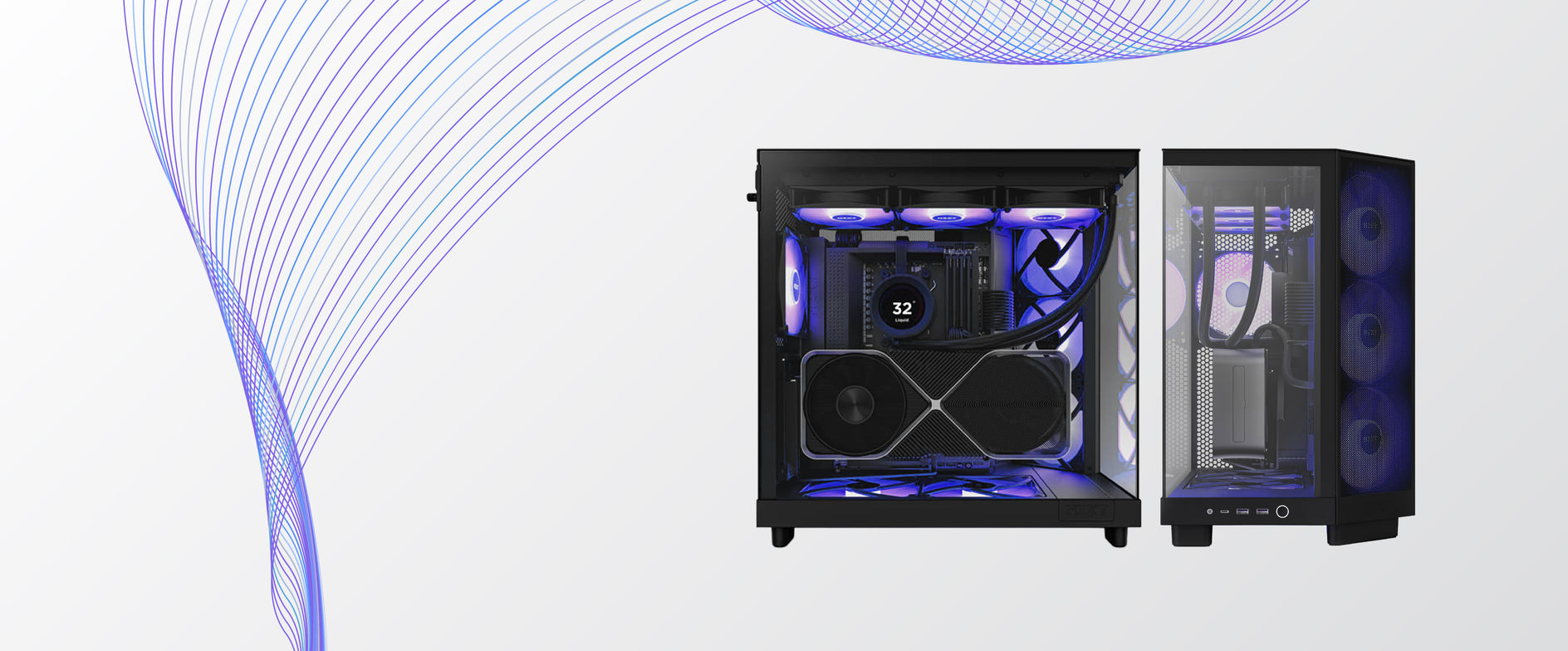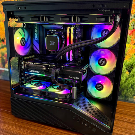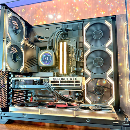 Made in Clearwater, USA, the Nyx D32 Compact Gaming PC is crafted with precision and passion. Each unit combines powerful Ryzen™ architecture, advanced liquid cooling, and refined aesthetics to deliver exceptional performance in a compact form. Designed to stay cool, quiet, and striking, the Nyx D32 embodies the essence of Twelf: Handcrafted. Powerful. Singular.
